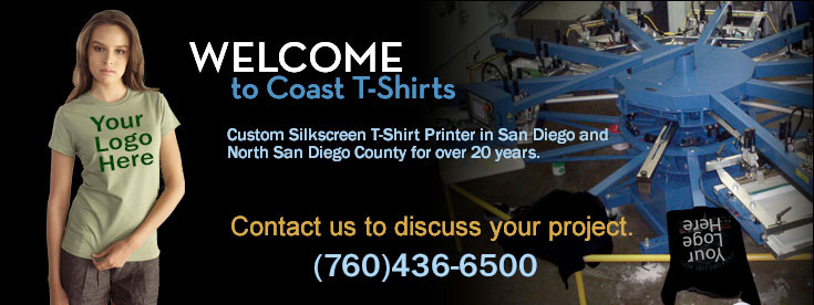I have been a custom silkscreen t-shirt printer in the San Diego and San Diego North County for over 25 years. I started printing custom T-shirts in Del Mar in1983. Then moved the shop to Encinitas in 1990. We are located at I-5 and Santa Fe drive Encinitas We can pick up and or deliver your custom screen printed tee shirts to anywhere in San Diego